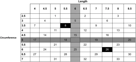 Insgesamt 75 Probandinnen konnten zwischen 33 Modellen mit einer Länge von 10,2 cm bis 21,6 cm wählen. Der Umfang variierte zwischen 6,4 cm und 17,7 cm.
